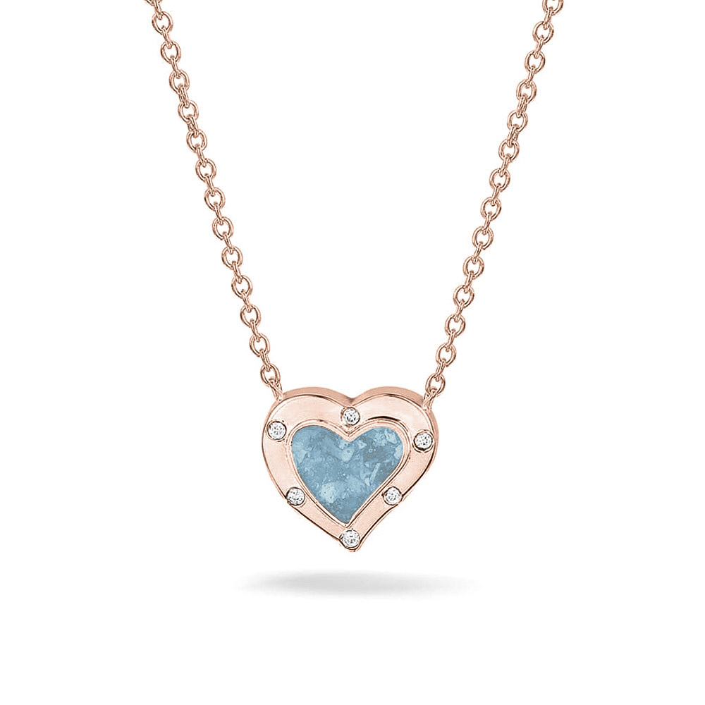 Heart gem necklace. This necklace with zircons or diamonds holds ashes or hair visibly in the front, through the integration with our special resin.