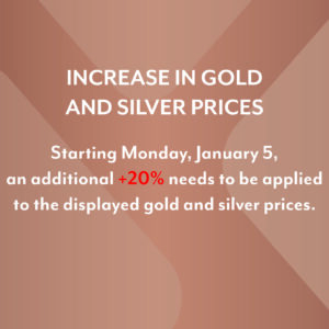 PLEASE NOTE: From Monday, 5 January 2026, we will apply a 20% surcharge to the displayed prices of SILVER and GOLD jewellery. Steel rings will remain subject to a 15% surcharge on top of the displayed prices.