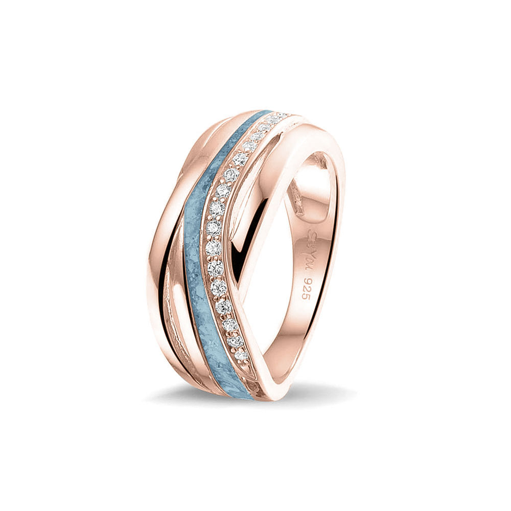 Fantasy gem ring. This ring holds ashes visibly in the front, through the integration with our special resin.