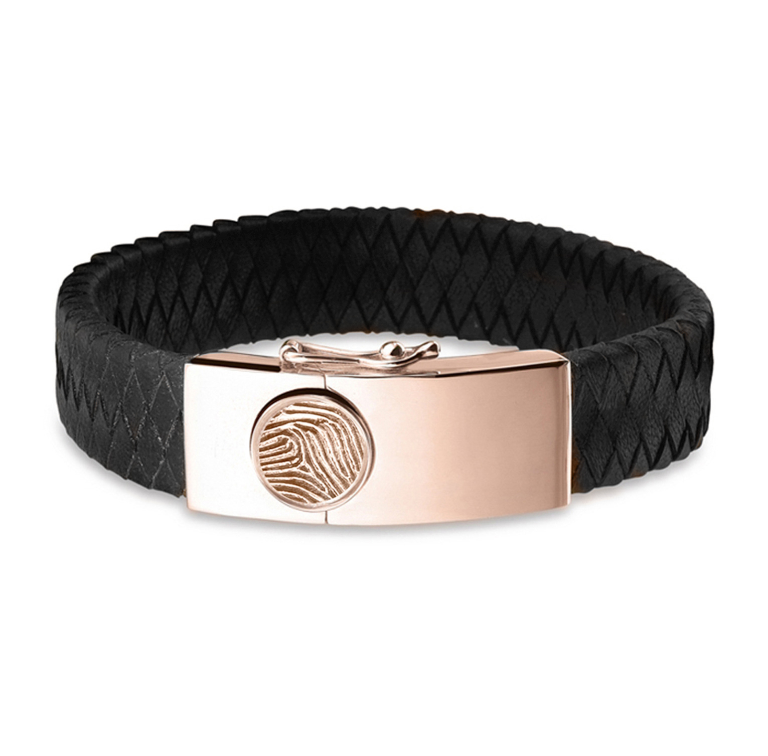 Fingerprint-bracelet with leather strap. To open the lock you’ll have to push on the fingerprint of your beloved.