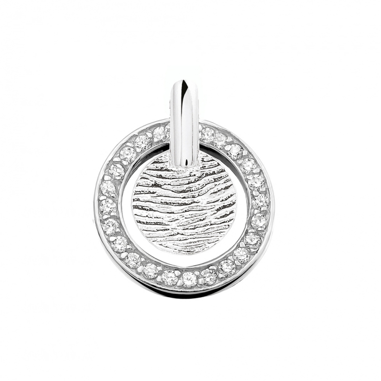 This pendant is designed for a fingerprint engraving in the centre. The outside rim can be made with either zircons or diamonds. Please note there’s no designated space for the filling of ashes. The fingerprint is included in the price.