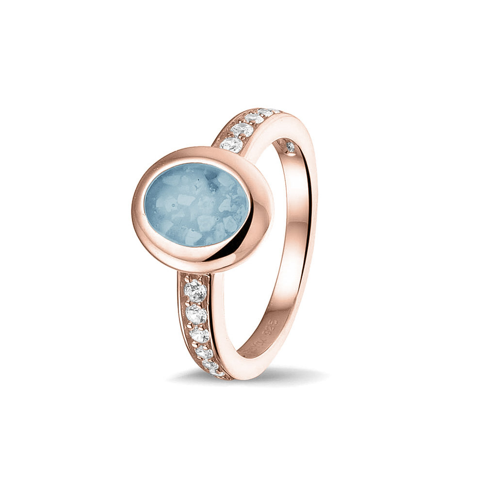 Polished oval gem ring. This ring holds ashes visibly in the front, through the integration with our special resin.