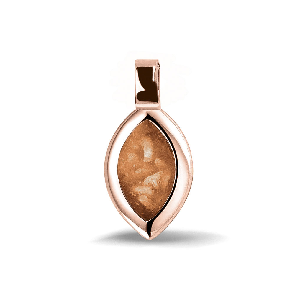 Plain marquise pendant. This pendant holds ashes, hair or breast milk visibly in the front, through the integration with our special resin.
