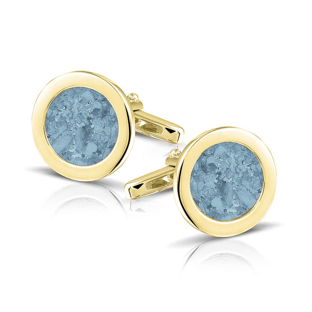 Round cufflinks filled with ashes visibly on the top. They come per pair. The ashes is integrated into the jewelry with our special resin.