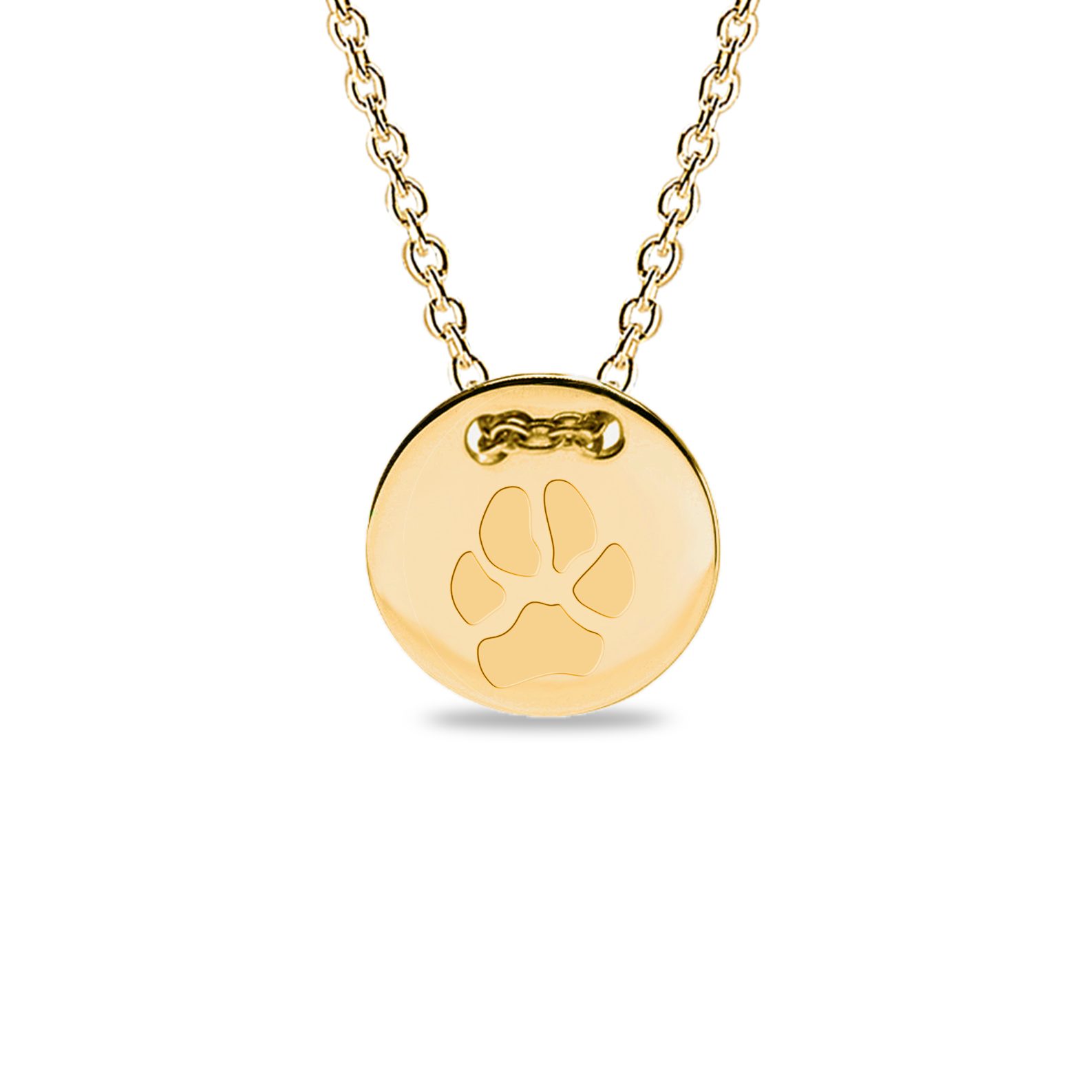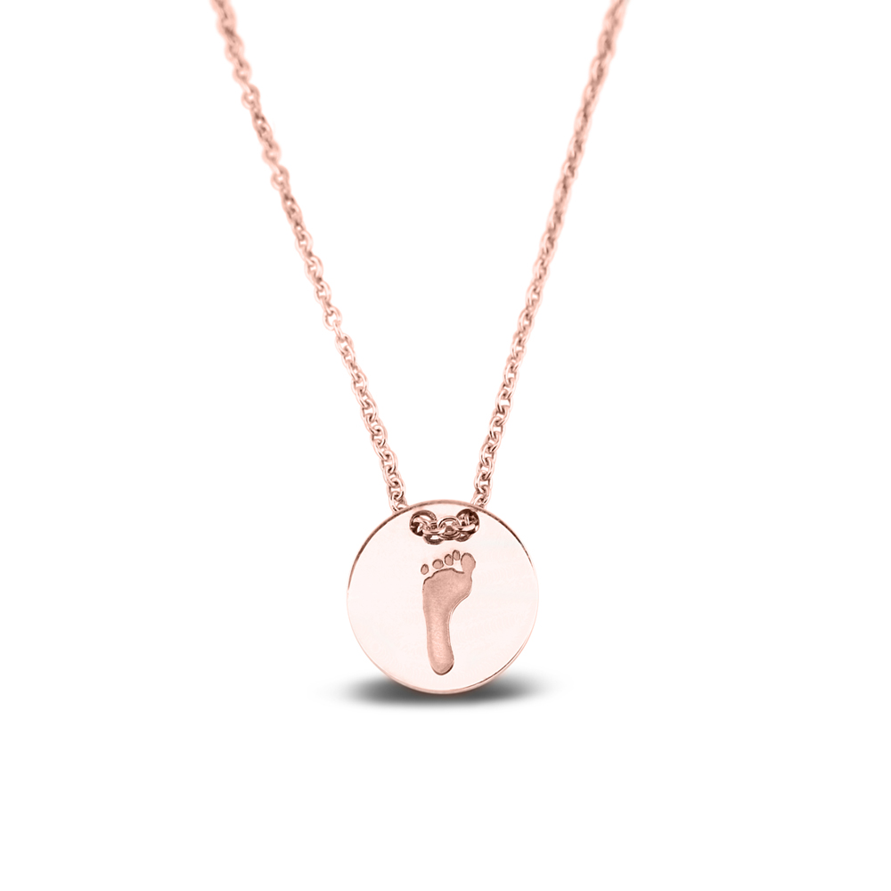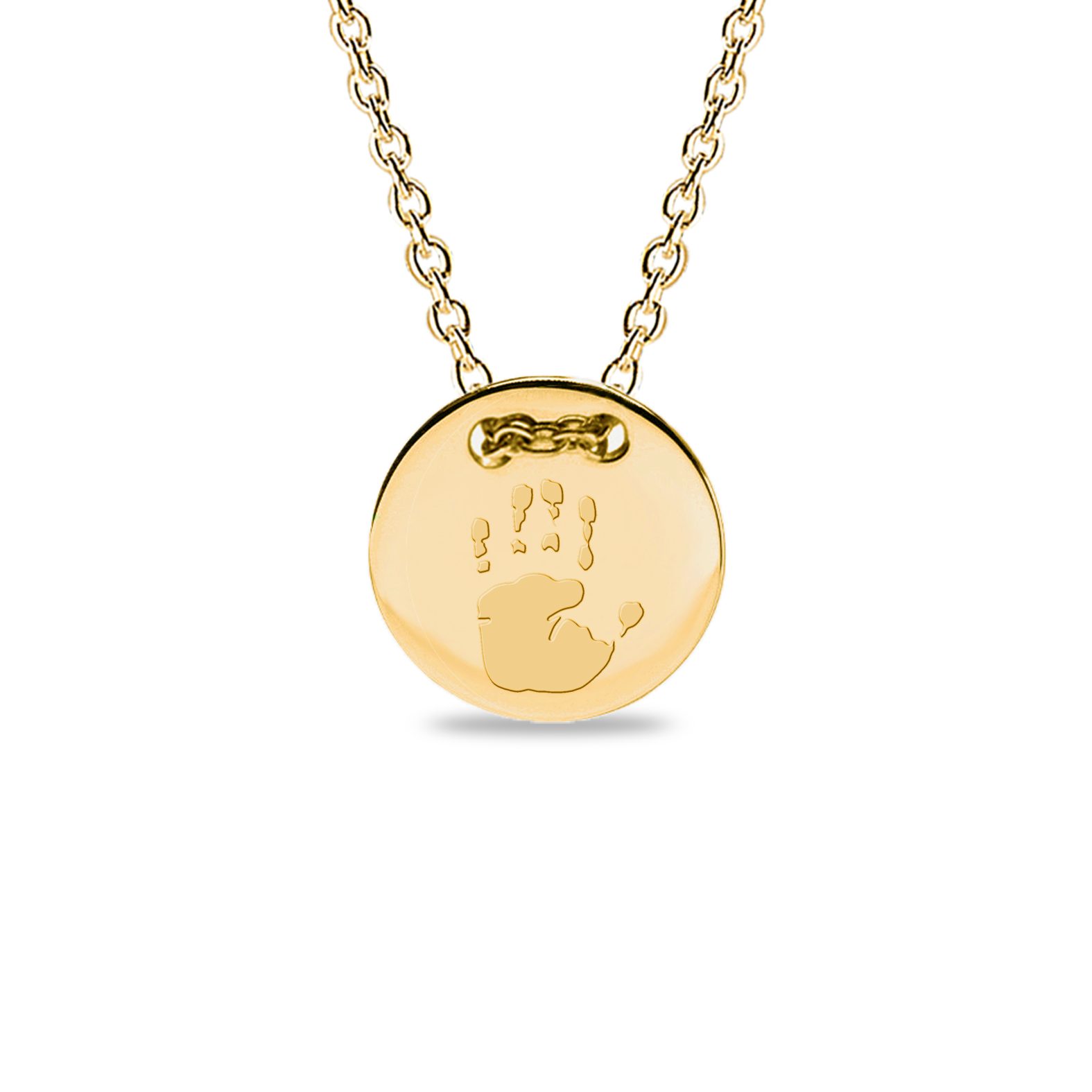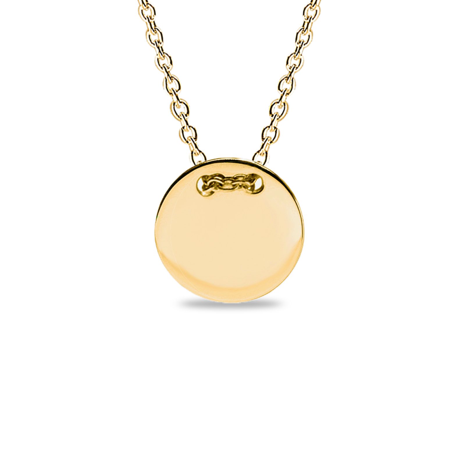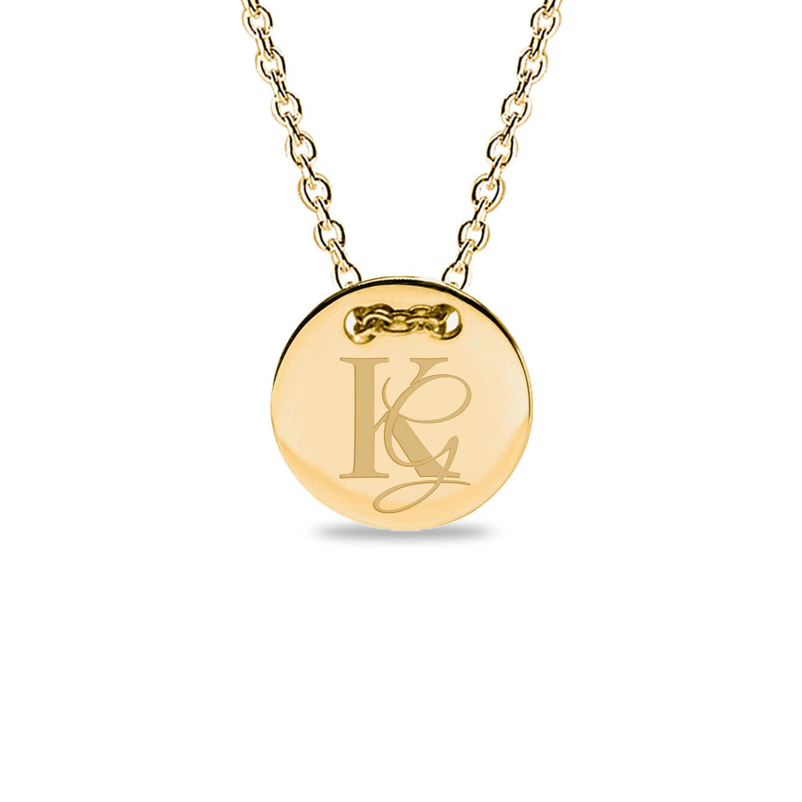 Round engraving pendant. Necklace included. Multiple types of engravings are also possible on the front and back of the pendant.