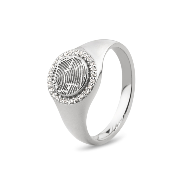 Small round signet & ash gem ring. This ring is suitable for engraving and / or filling with ashes. Multiple types of engraving are possible. The engraving is excluded in the price. We don’t need to have the original fingerprint send to us. A clear picture (taken with your smartphone) uploaded on this page is perfect. Possible engravings are: