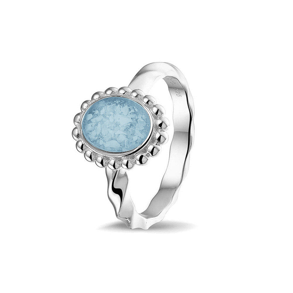 Twisted band bubble oval ring. This ring holds ashes visibly in the front, through the integration with our special resin.