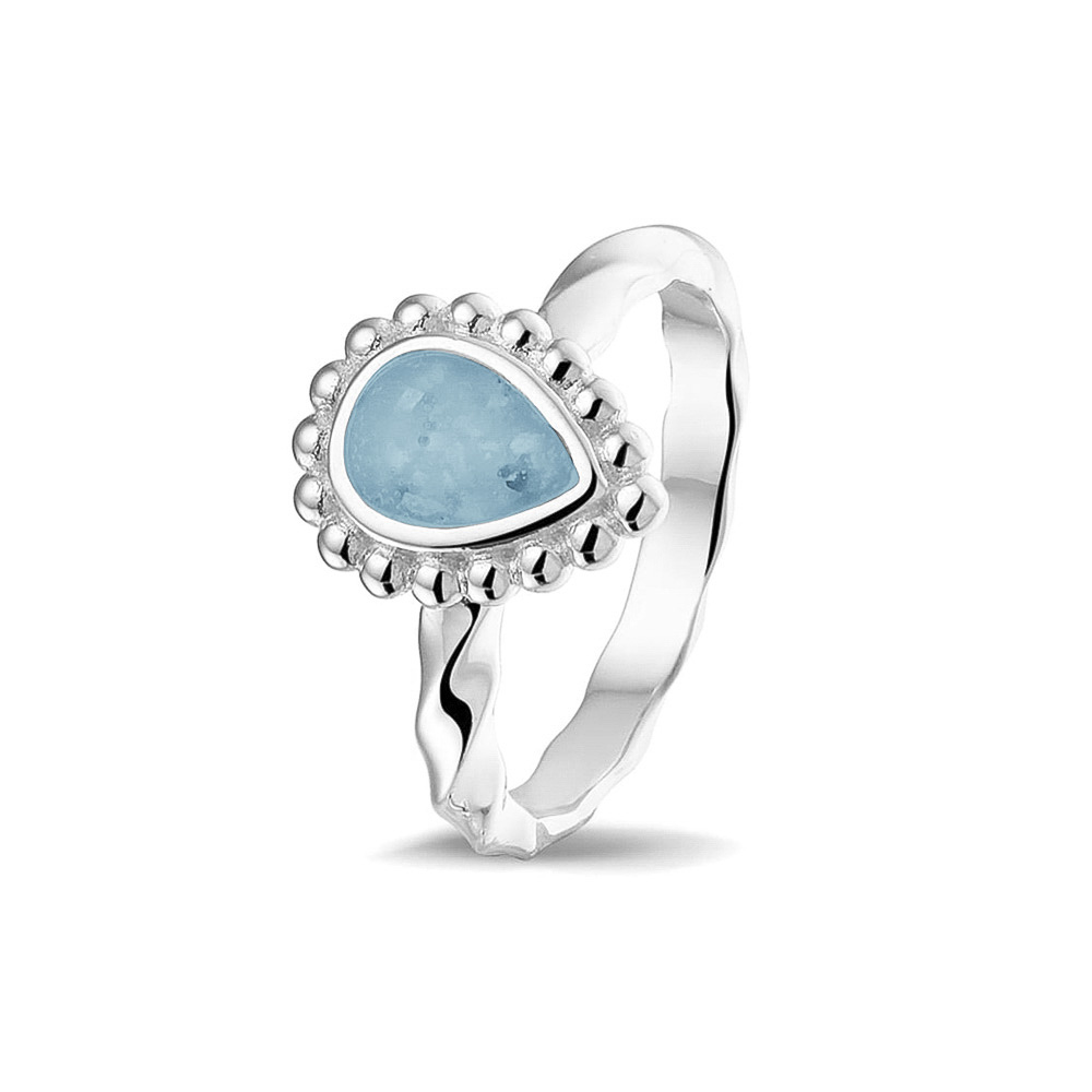 Twisted band bubble ring. This ring holds ashes visibly in the front, through the integration with our special resin.