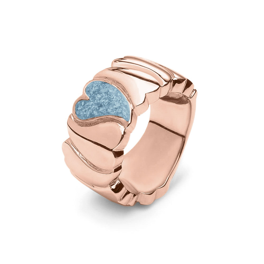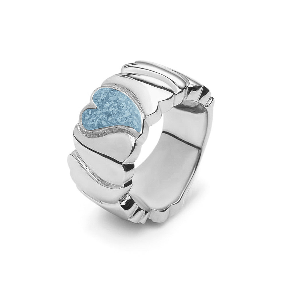 Hearts ring. This ring holds ashes visibly in the front, through the integration with our special resin.